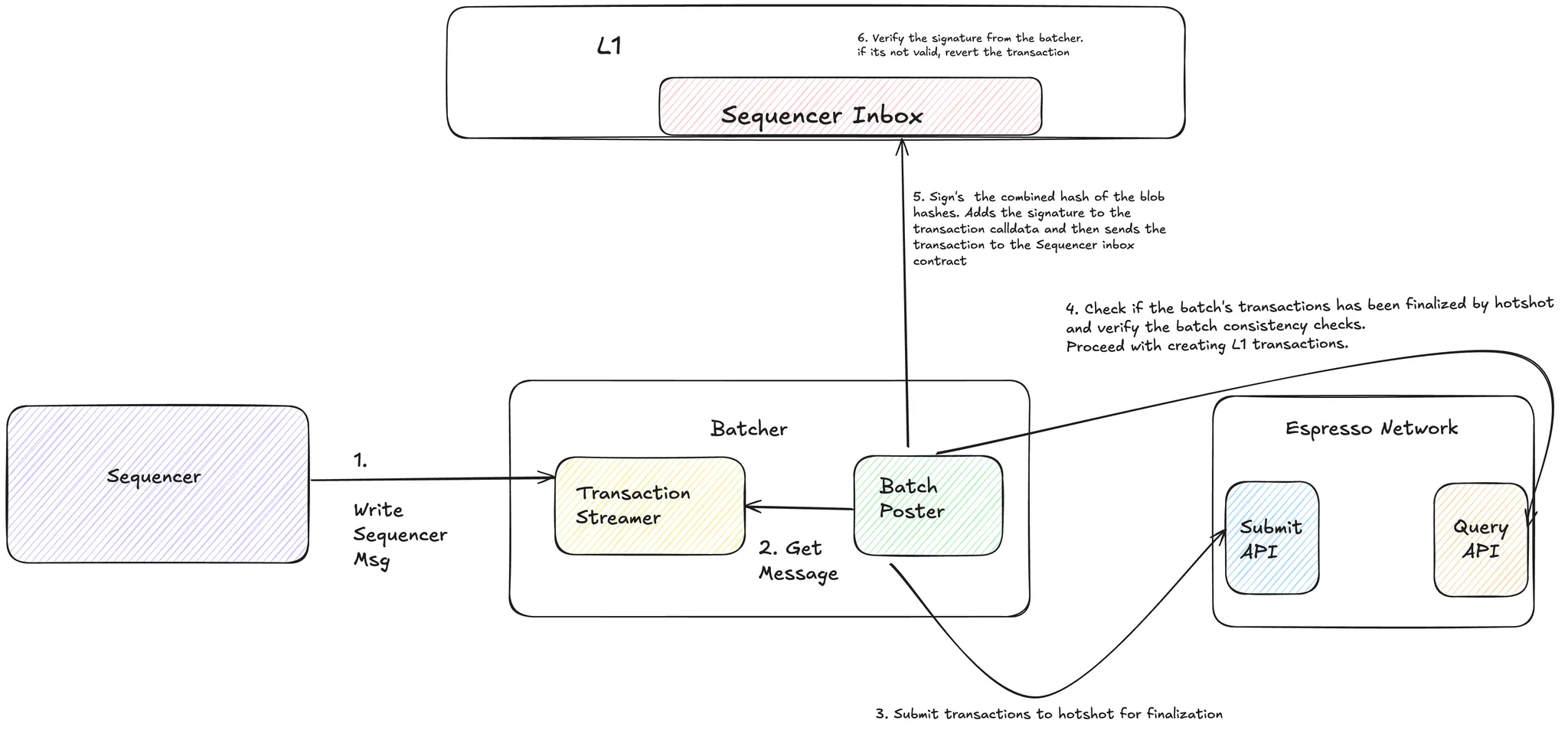 The batcher then calls the query API to check if the transaction has been finalized by HotShot. This code is also written and can be found here.